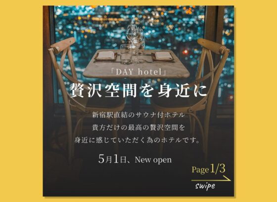 [ スクール課題 ] 新宿駅直結サウナ付きホテルInstagram告知用バナー