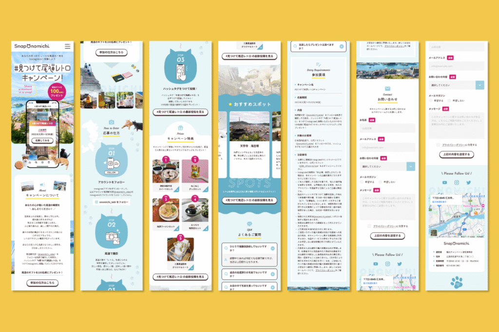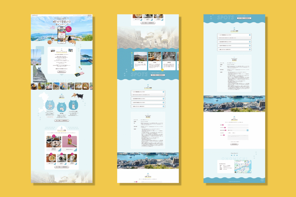 猫が主役となっているキャンペーンということであしらい画像がたくさんレイアウトされているデザインとなっており、こちらのレイアウトは慎重にデザインファーストで実装しました。アニメーションもシンプルながらデザインが映えるカラー選定と動きとなっています。