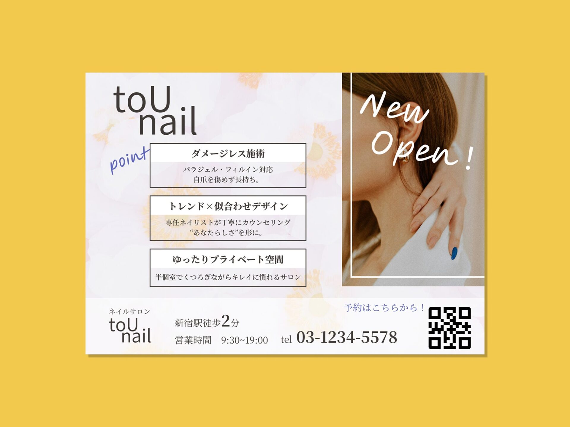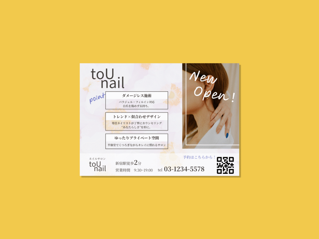 ターゲットから程よく華やかな構成で制作しました。掲載テキストは多いですがグループ分けとリズム感あるレイアウトで項目ごとに読みやすい構成となっています。店舗情報も優先順位を整理してバランスよく一目でわかりやすいレイアウトを意識して制作することができました。